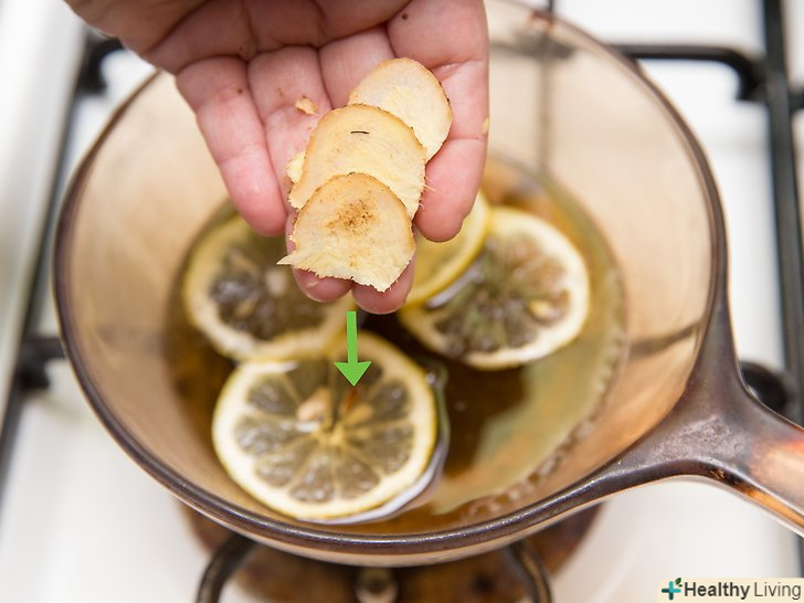 Приготуйте ліки від кашлю на основі імбиру і суміші з меду і лимона.імбир часто використовується для поліпшення травлення, усунення нудоти і блювоти. Він також застосовується як відхаркувальний засіб. Імбир допомагає усунути кашель, розріджуючи слиз і мокротиння, а також діє як релаксант. [6]- Очистіть приблизно 4 см свіжого кореня імбиру. Натріть на дрібній тертці і додайте в суміш меду з лимоном. Нагрівайте суміш на повільному вогні протягом 10 хвилин. Потім додайте ¼ - ⅓ склянки води. Добре перемішайте і охолодіть.
