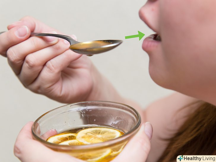 Приготуйте ліки на основі меду і лимона.підігрійте одну склянку меду на повільному вогні. Додайте в теплий мед 3-4 столові ложки свіжовичавленого лимонного соку. Далі додайте ¼ - ⅓ склянки води в медово-лимонну суміш. Продовжуйте нагрівати отриману суміш на повільному вогні, постійно її помішуючи. Охолодіть суміш. Приймайте по 1-2 столові ложки в разі необхідності.- Якщо є така можливість, використовуйте мед Манука-цілющий сорт, одержуваний в Новій Зеландії. Якщо такої можливості немає, ви можете використовувати органічний мед, який також буде володіти антибактеріальними і противірусними властивостями.[1]