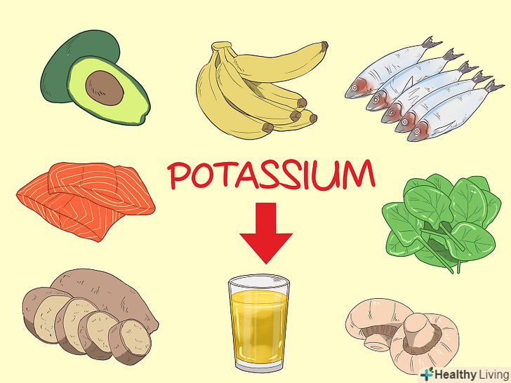 Зменшіть споживання калію.рекомендована кількість калію для людини зі здоровими нирками становить 3500-4500 мг. якщо ж у людини вражені нирки, і він знаходиться на дієті з обмеженим споживанням калію, рекомендована норма становитиме 2000 мг.[2]- Проконсультуйтеся з лікарем, якщо не знаєте, чи слід Вам сідати на дієту з обмеженим споживанням калію.