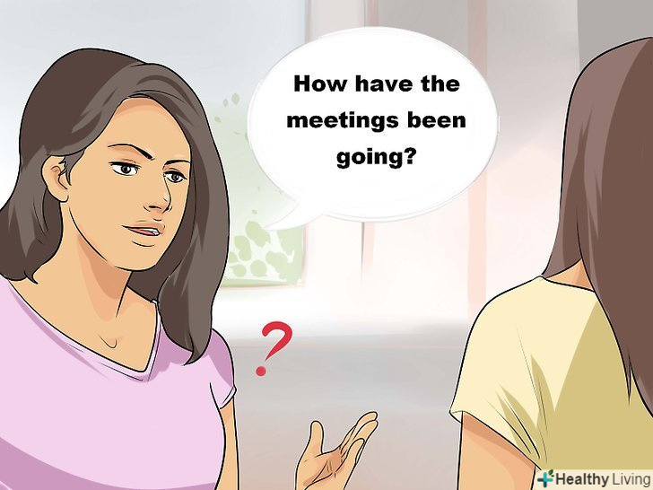 - Переконайтеся в тому, що людина лікується. Однак, не варто проводити все у формі допиту, тобто відповідь повинна бути розгорнутою, а не односкладовою. Питання " чи ходив ти на зустріч сьогодні?", "чи говорив Ти з терапевтом?"неприпустимі, запитаєте краще" як пройшла зустріч?"або" чи дізнався ти щось нове про себе в ході зустрічі?".