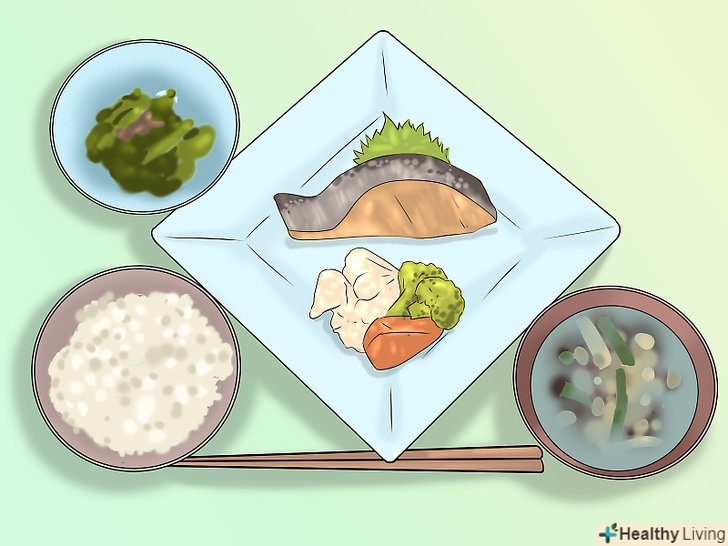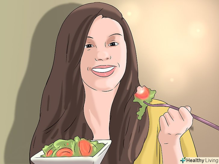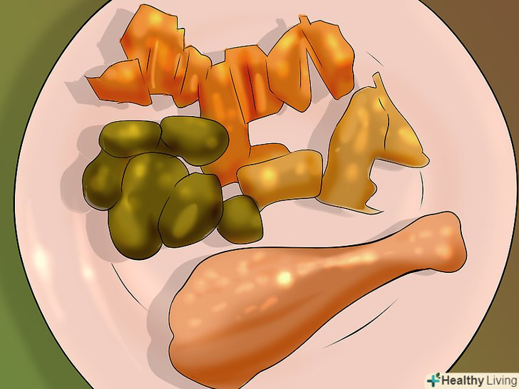 Слідкуйте за розмірами порцій. дієтологи рекомендують їсти повільно, це допомагає розпізнавати, коли ви ситі. Коли ви продовжуєте їсти після того, як задовольнили голод, ви споживаєте багато калорій, яких можна було б уникнути. [13] обмежте кількість споживаних в день калорій до 2000. Якщо ви намагаєтеся скинути вагу, скоротіть цю кількість до 1800 ккал. Але ніколи не Споживайте менше 1200 ккал в день!- Розмір однієї порції м'яса, риби або птиці повинен становити 85 грам (коли блюдо вже приготовлено), або приблизно відповідати розміру вашої долоні. [14]