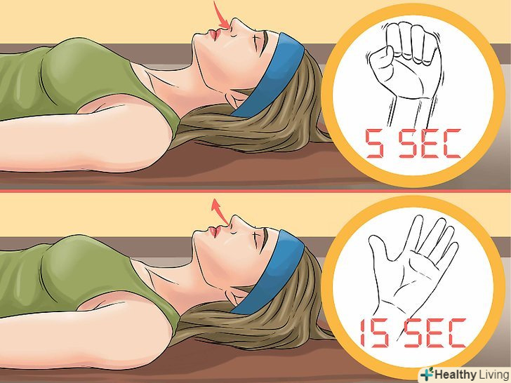 - Виберіть іншу групу м'язів для чергового п'ятисекундного напруги. Ви можете напружити, ноги, торс, сідниці або щелепно-лицьові м'язи. Продовжуйте чергувати напругу і розслаблення, поки не пройдетеся по всіх основних групах м'язів.