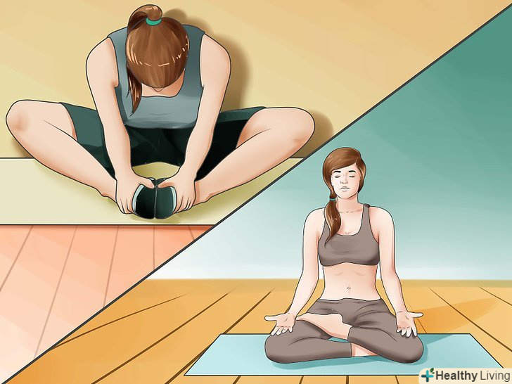 Подумайте про самоусвідомлення. вправи на самоусвідомлення-це вправи, які допомагають звернути увагу на поточний момент, що дозволяє людині скорегувати свій хід думок і почуття, які у нього виникають як реакція на події. [32] ці прийоми допомагають боротися зі стресом і тримати його під контролем. Часто в якості таких методів використовується медитація, дихання, йога. [33]- Спробуйте помедитувати самостійно, якщо не можете ходити на йогу. Робити це можна в будь-якому місці і так довго, як захочете. Всього лише 20 хвилин медитації можуть послабити стрес. Достатньо лише знайти зручне Тихе місце, розташувати руки зручним чином, закрити очі і сконцентруватися на диханні. Думайте про свої відчуття в поточний момент і про своє тіло. Звертайте увагу на кожен подих і на саму незначну біль. Постарайтеся позбутися від усіх негативних або тривожних думок, і в цьому, можливо, полягає найскладніше в цьому процесі. Найголовніше-дихайте. Якщо помітите, що ваші думки пішли в іншу сторону, почніть рахувати вдихи і видихи. Спробуйте медитувати відразу після пробудження або перед відходом до сну. [34]