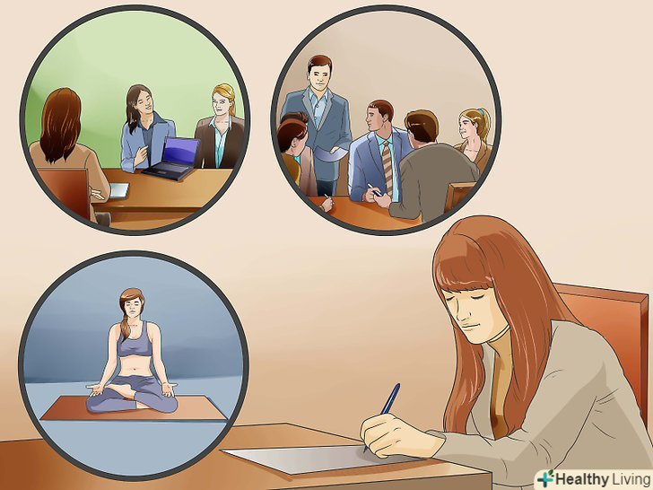 Розбирайтеся зі стресовими ситуаціями відразу ж. не відкладайте проблеми і не уникайте їх - беріться за них. Вам навряд чи вдасться самостійно позбутися від усіх речей, які турбують вас, однак ви зможете хоча б послабити їх вплив в якійсь мірі і, що ще важливо, не допустити погіршення ситуації, тому що інакше стрес почне чинити негативний вплив на ваш душевний і фізичний стан.- Розберіться з проблемами на роботі. Якщо ви відчуваєте, що переробили або що вас не цінують, поговоріть зі своїм керівником спокійно і по справі. Якщо ви відчуваєте, що виконуєте занадто багато обов'язків, знайдіть спосіб працювати на півгодини менше в день - можна позбутися від відволікаючих чинників і непотрібних перерв в роботі. Постарайтеся вирішити проблеми так, щоб послабити вплив одного з факторів стресу, не викликаючи додаткових проблем. Навчіться переконливо висловлювати свої думки, щоб до ваших потреб ставилися серйозно. [36]