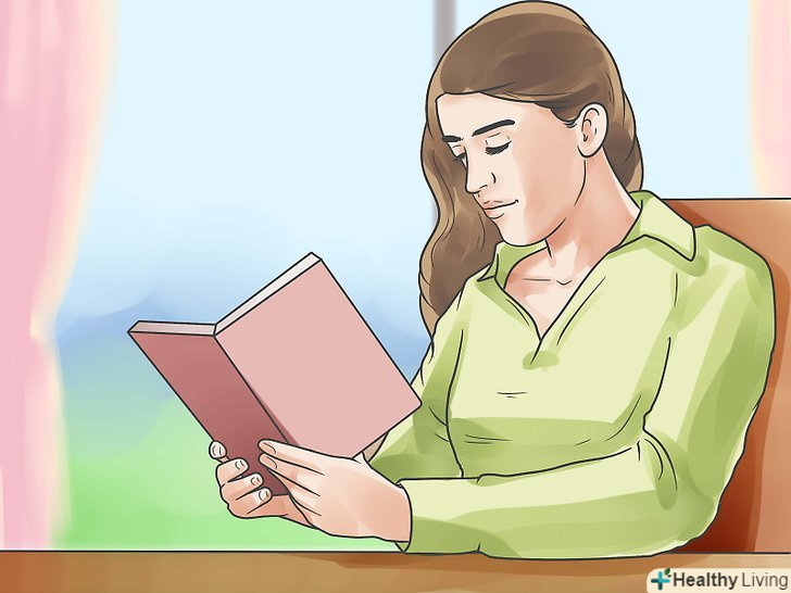 Дихайте глибоко. якщо зробити дихання більш глибоким, можна включити механізм розслаблення. Глибоке дихання також відоме як діафрагмальне дихання, дихання животом, уповільнена респірація. Глибоке дихання стимулює повноцінне надходження кисню в організм, тобто надходить кисень повністю замінює видихається вуглекислий газ. Це дозволяє уповільнити серцебиття і стабілізувати або навіть знизити кров'яний тиск. [30]- Знайдіть спокійне і зручне місце, де ви могли б сісти або лягти. Зробіть звичайний вдих або два, щоб заспокоїтися. Потім спробуйте дихати глибоко: зробіть повільний вдих через ніс, щоб ваші груди і живіт роздулися, коли повітря наповнить легені. Нехай живіт надуется до межі. Не затримуйте дихання-цю помилку роблять досить часто. Потім почніть повільно видихати ротом (або носом - робіть так, як вам зручніше). Коли звикнете до цього, переходите до звичайного дихання. Сядьте, закрийте очі і почніть дихати глибоко, представляючи при цьому щось приємне або повторюючи думку або фразу, яка допомагає вам розслабитися. [31]