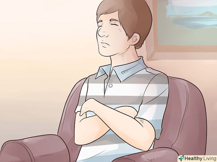 Розслабтеся.часто наше тіло утримує велику кількість напруги, про який ми навіть не підозрюємо. Постарайтеся повністю розслабитися і перекладіть вагу свого тіла на стілець або крісло.- Продовжуйте глибоко дихати, зосередьте увагу на рухах грудної клітини, легенів і діафрагми.