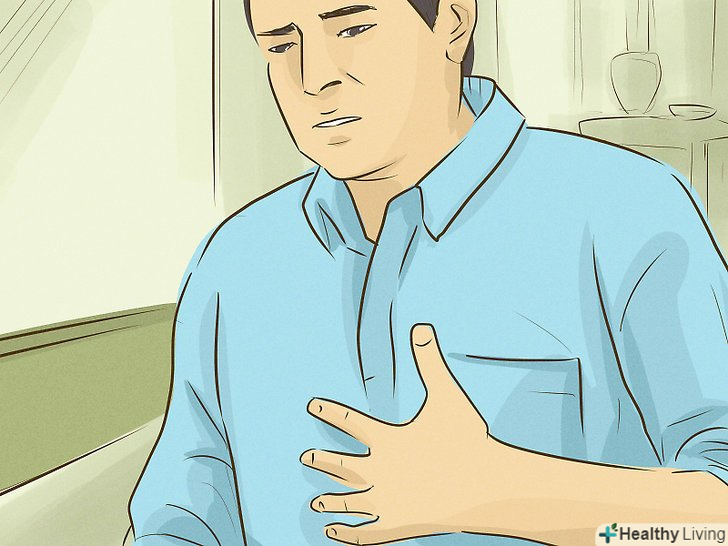 Розпізнайте симптоми інфаркту. це відбувається, коли згусток крові потрапляє в серце і блокує частину кровотоку. [14] інфаркт також може виникнути через звуження артерії від скупчення відкладень на її стінках. Будьте уважні до будь-якого виду болю в грудях. Біль від інфаркту, як правило, поширюється по тілу і не може бути точно визначена в конкретній області. Ознаки інфаркту: [15]- Задишка і потовиділення;