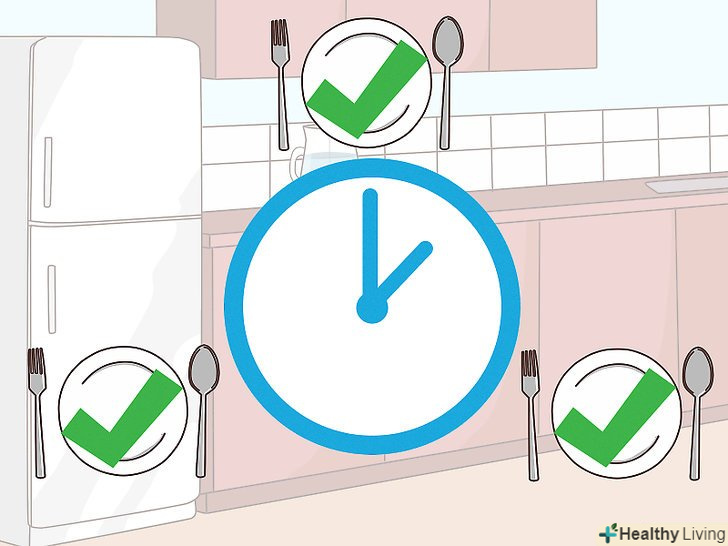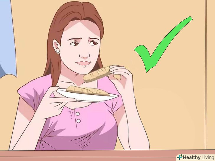 Харчуйтеся регулярно. необхідно їсти три рази на день — після пробудження, в обід і ввечері. Якщо пропустити прийом їжі або споживати менше вуглеводів, ніж потрібно організму, рівень цукру може знизитися. [23]- Якщо ви пропустили прийом їжі або немає можливості поїсти, перекусіть бананом або горіхами.