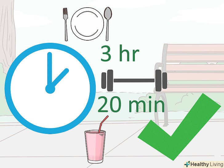 Їжте до і після тренувань. фізичні навантаження віднімають сили, тому після інтенсивного тренування рівень цукру знижується. За три години (не за одну годину) до тренування підкріпіться вуглеводами. Протягом 20 хвилин після навантажень поповніть запас білків і вуглеводів (наприклад, білковий смузі), щоб запобігти гіпоглікемії. [24]
