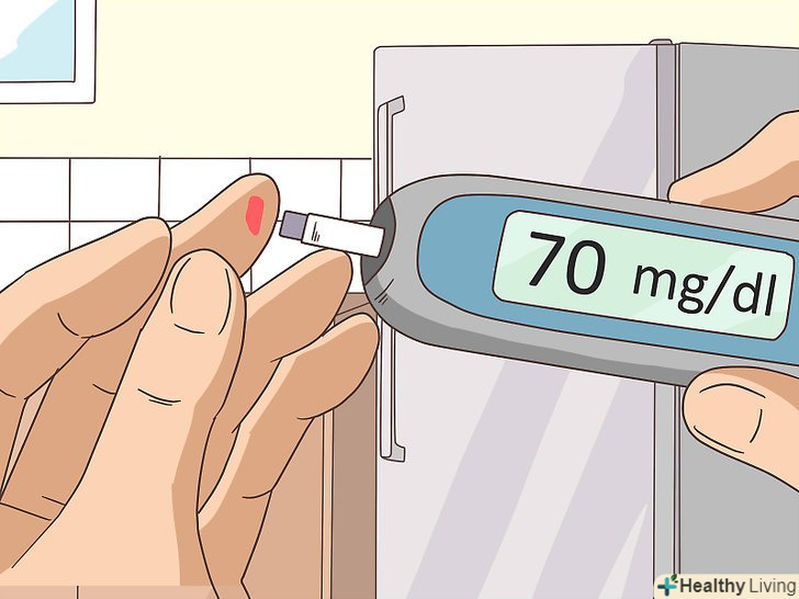 Перевіряйте рівень цукру крові. при діабеті регулярно перевіряйте свій рівень цукру крові згідно з вказівками лікаря. Для цього використовується спеціальний прилад. Якщо у вас поки ще немає такого приладу для контролю рівня цукру крові, то проконсультуйтеся у лікаря про доступні на ринку варіантах. [25]- При використанні приладу дотримуйтесь вказівок виробника.
