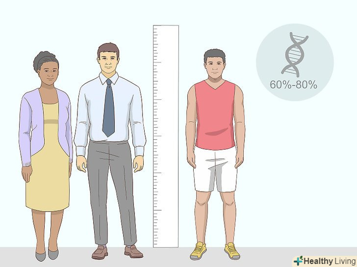 Не забувайте, що здебільшого ваш ріст визначається генами. вчені вважають, що зростання людини на 60-80% визначають його гени. [7] на жаль, з генетикою нічого не вдіяти. Це не означає, що якщо у вас невисокі батьки, то ви не зможете бути високим. Просто якщо батьки невисокі, то у вас менше шансів стати високим.