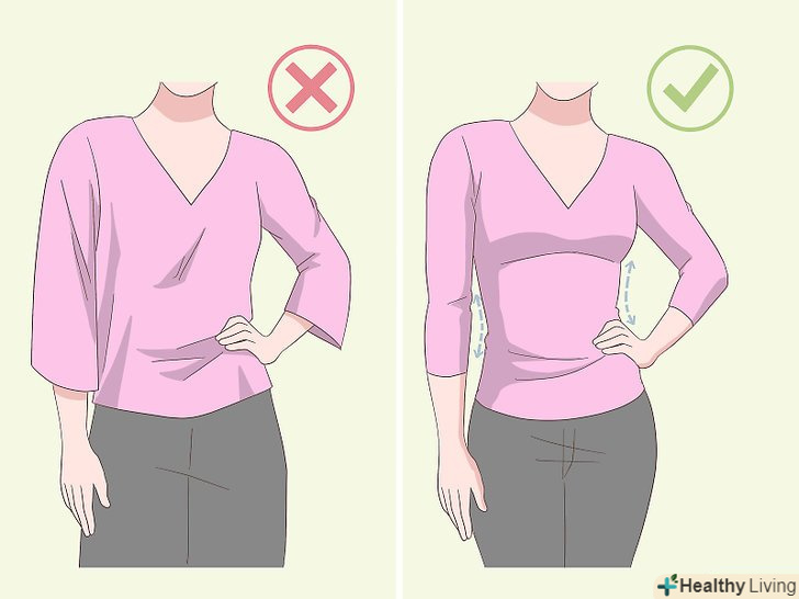 Одягайте облягаючий одяг. облягаючий одяг надає акцент лініях вашого тіла. У мішкуватому одязі ці лінії втрачаються, візуально роблячи вас нижче. Носіть облягаючий одяг, який змушує вас почувати себе краще, а не ту, в якій вам незручно.