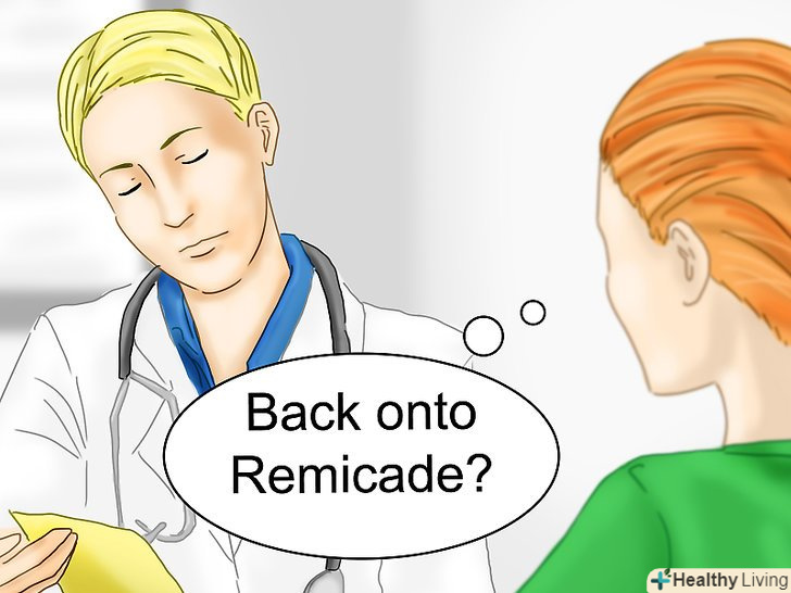 Запитайте лікаря, чи зможете ви приймати Ремікейд пізніше. згідно з вказівками виробників, коли пацієнт припиняє приймати Ремікейд, організм починає виробляти антитіла до цього препарату. Через це препарат може стати менш ефективним у майбутньому. [5]- Запитайте лікаря, чи може це статися у вашому випадку, якщо після скасування ви знову спробуєте продовжити прийом Ремікейда.