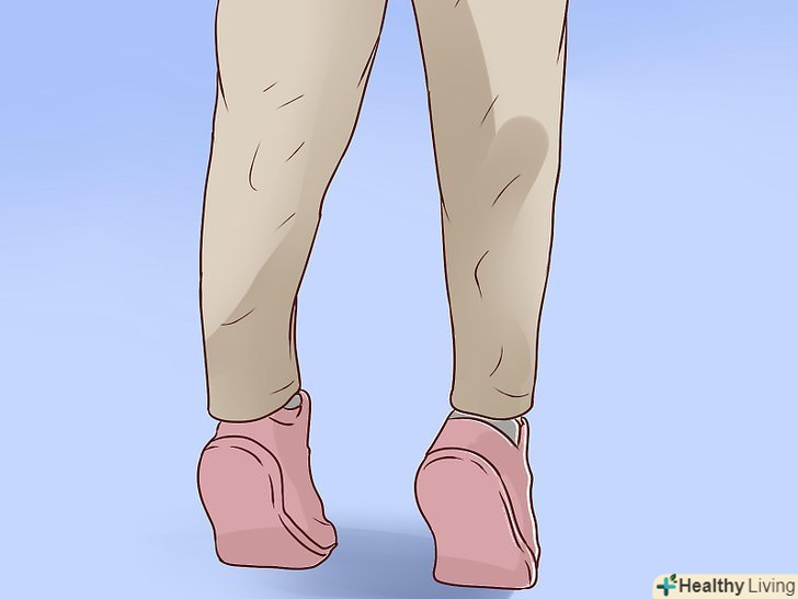 Вправа відриву п'ят від підлоги. ця вправа зміцнить ваші литкові м'язи. Виконуйте в 3 підходи по 12 разів.- Встаньте за спинкою стільця і тримайтеся за неї для підтримки рівноваги.