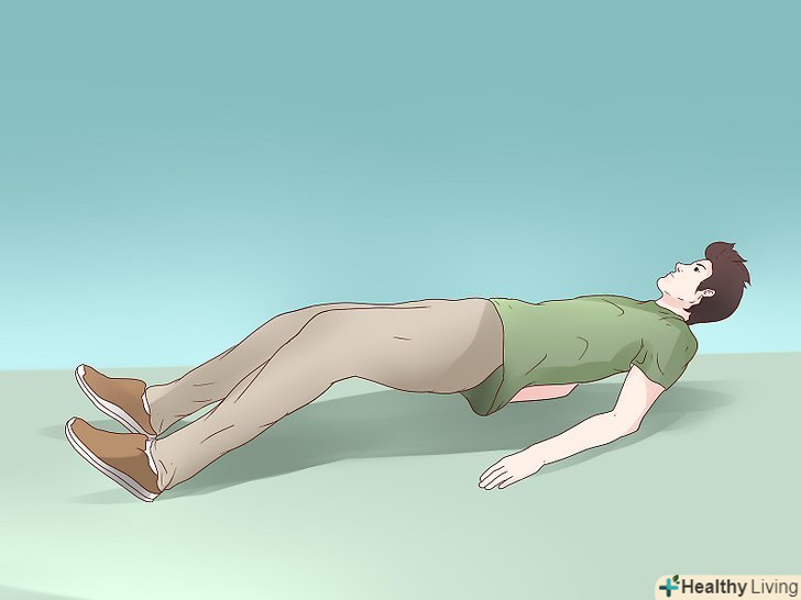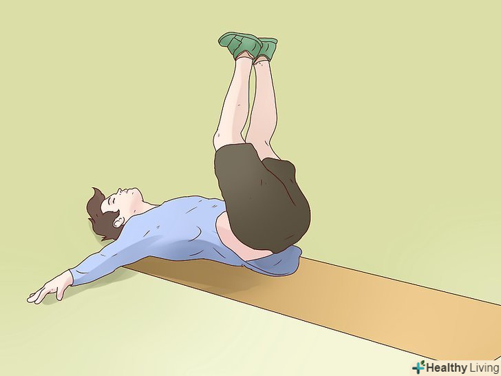 Виконуйте вправу «місток з упором на п'яти». ця вправа допоможе зміцнити підколінне сухожилля, великі сідничні м'язи і м'язи стегна. Виконуйте цю вправу в 3 підходи по 12 разів.- Ляжте на спину, руки схрещені на животі. Ваші коліна повинні бути зігнуті таким чином, щоб п'яти примикали до підлоги.
