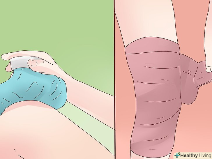 Використовуйте лід і холодні обертання коліна після тренування, щоб зняти набряклість. з набряком можна боротися підняттям коліна вгору, прикладанням пакета з льодом і холодного обертання (пов'язка з льодом). Якщо ви помітили, що ваше коліно почало більше опухати або біль в коліні посилюється після тренування, зніміть набряклість, наклавши на коліно пов'язку з льодом, піднявши ноги вгору.- Пакети з льодом можуть залишатися на коліні 15-20 хвилин.