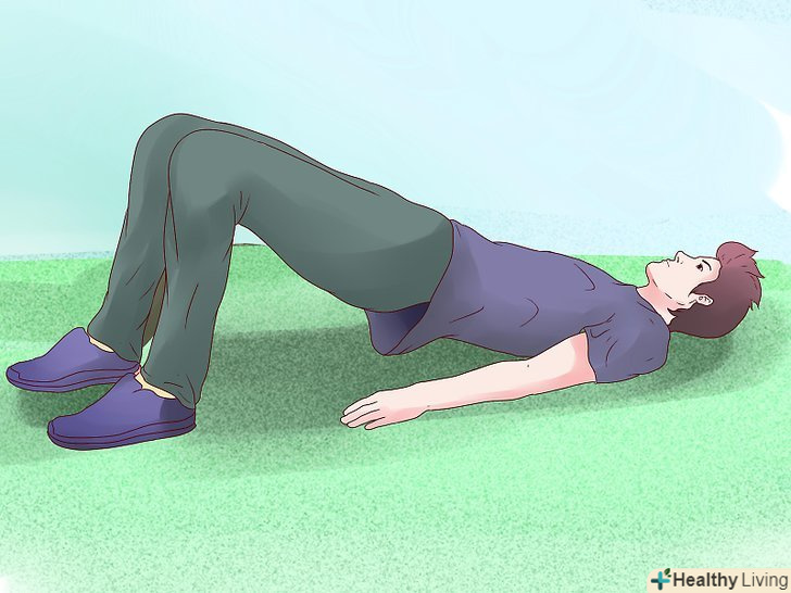 Спробуйте іншу вправу. ця вправа зміцнить ваші сідничні м'язи, які відповідають за рух в сторону і обертають руху ноги. Виконуйте вправу в 3 підходи по 12 разів.- Ляжте на спину, коліна випрямлені, щиколотки знаходяться під кутом 90 градусів, перпендикулярно підлозі.
