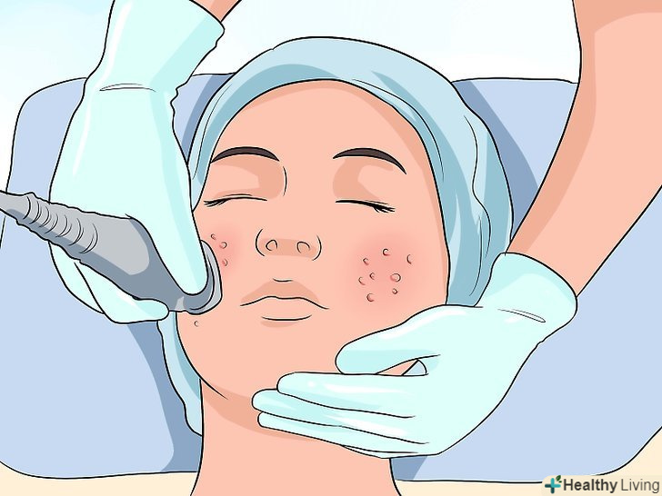Спробуйте дермабразію. дермабразія-це коли лікар зчищає верхній шар шкіри (епідерміс) дуже тонким алмазним бором або дротяною щіткою. Ця процедура дуже добре впливає на плями, викликані вуграми.- Спробуйте Мікродермабразію. Вона трохи м'якше дермбразии. Епідерміс обробляється м'яким абразивним інструментом, що зменшує плями і сприяє виробленню колагену.