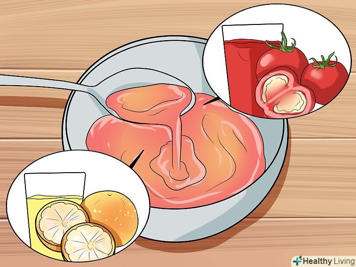 Скористайтеся чудовою силою лимонів. лимонна кислота бореться з пігментами шкіри, які створюють плями на шкірі. Сік лимона не тільки покращує зовнішній вигляд плям, але так само освітлює шкіру і вона стає більш схильною до впливу сонячних променів, тому наносите на шкіру крем для засмаги перш, ніж вийти на вулицю.- Регулярно наносите суміш томатного і лимонного соку на обличчя ватним тампоном. Через 10 хвилин змийте прохолодною водою. Ця суміш зменшить плями і освітлить волосся на обличчі.