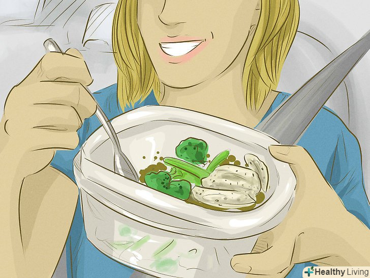 Робіть здорові перекушування. зміна способу життя в бік більш здорового не означає, що не можна насолоджуватися перекусами. Насправді, перекушування допомагають управляти голодом і контролювати його, а ще сприяють втраті ваги. [11]- Здорові перекушування повинні містити трохи нежирного білка і фруктів або овочів. Але заради довгострокових змін починайте замінювати перекушування поступово. Наприклад, якщо зазвичай після обіду ви з'їдаєте маленьку пачку чіпсів, то спробуйте замінити їх маленькою пачкою цільнозернових хлібців.