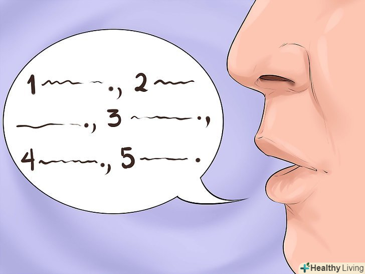 Виконуйте відлік. Скажіть людині, що він буде поступово розслаблятися, поки ви вважаєте від 1 до 5. На кожен рахунок описуйте занурення людини в сон: «1, розслаблення розтікається по вашому тілу. 2, розслаблення стає глибше. 3, ваша свідомість розслаблена. 4, ви більше не відчуваєте нічого, крім розслаблення. 5, розслаблення стає глибше з кожною секундою". [16]- Рахунок можна вести і в зворотному порядку: «10, ви відчуваєте розслаблення. 9, все більш і більш глибоке. 8, все відмінно, продовжуйте розслаблятися. 7, на кожен рахунок ви занурюєтеся в більш глибокий транс. 6, ще глибше, відмінно. 5, глибше, а тепер повністю розслабтеся. 4, 3, ви відмінно виконуєте вказівки. 2, ще більш глибокий сон. 1, 0. ви занурилися в глибокий транс"»
