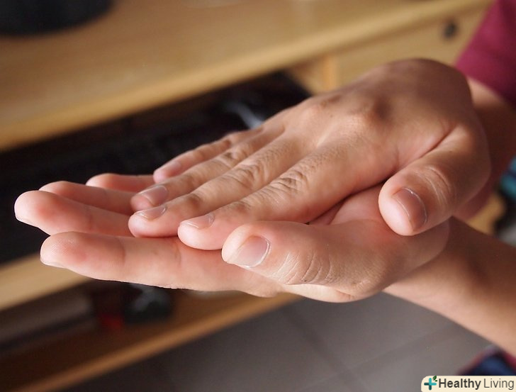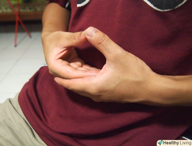 Натисніть великим пальцем на праву ніздрю. глибоко дихайте через діафрагму, через ліву ніздрю. Думайте "Ом". Прикладіть вказівний палець, потім середній, потім безіменний до лівої ніздрі. Глибоко дихайте через діафрагму, через праву ніздрю і думайте "Ом".- Дихайте, змінюючи сторони туди-назад до тих пір, поки не досягнете відчуття внутрішнього спокою.