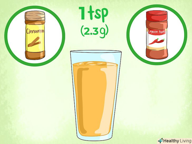 Додайте корицю або кайенский перець, щоб підвищити харчову цінність. додайте в напій 1 чайну ложку (2,5 грам) меленої кориці або кайенского перцю, щоб підвищити в ньому кількість антиоксидантів. [8] кориця і перець додадуть напою пікантності, а також допоможуть організму спалювати калорії. Ретельно перемішайте спеції. [9]- Для посилення смаку покладіть паличку кориці в гарячий напій.