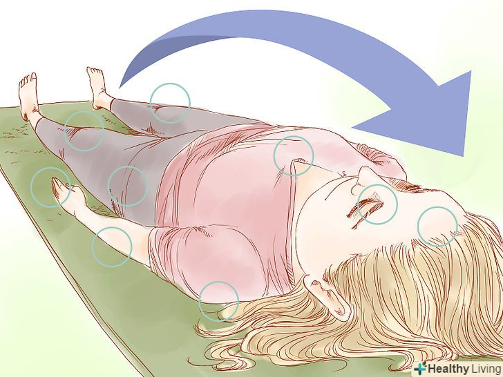 Послідовно сконцентруйтеся на своєму тілі. це означає концентрацію на кожній частині тіла по черзі і її усвідомлене розслаблення. Для початку сядьте або ляжте в зручній позі. Закрийте очі і почніть концентруватися на диханні, а потім переміщайте свій фокус з однієї частини тіла на іншу. Прислухайтеся до своїх відчуттів. [22]- Можливо, Вам буде зручно почати знизу і просуватися вгору. Наприклад, сконцентруйтеся на відчуттях в пальцях ніг. Зробіть усвідомлене зусилля, щоб розслабити будь-які напружені м'язи і звільнитися від напруги або тиску. Коли ваші пальці ніг будуть повністю розслаблені, переходите до стоп і повторіть процес розслаблення.