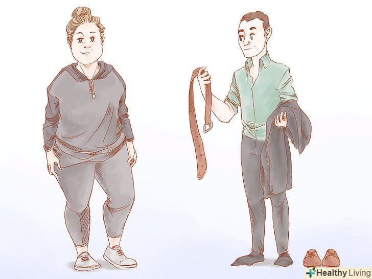 Одягніть зручний одяг. Одна з найголовніших цілей медитації — заспокоїти розум і заблокувати зовнішні подразники. [4] це може бути складно, якщо ви відчуваєте фізичний дискомфорт через вузьку або обмежує руху одягу. Постарайтеся надягати для медитації вільний одяг і не забувайте знімати взуття. [5]- Одягніть светр або кардиган, якщо ви плануєте медитувати в прохолодному місці, або накиньте на плечі плед або шаль. Якщо ви цього не зробите, то вся ваша увага сконцентрується на відчутті холоду, і вам захочеться скоріше закінчити сеанс.