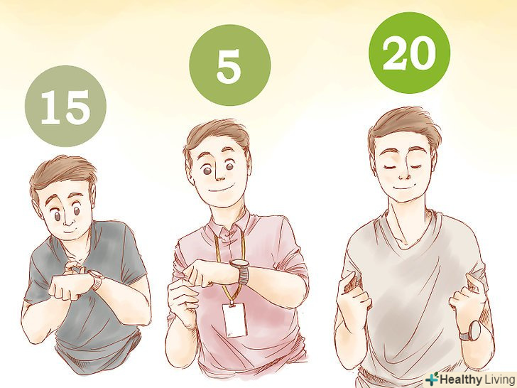 Вирішіть, як довго ви будете медитувати. перед початком Вам слід вирішити, скільки часу ви зможете приділити медитації. Багато практики радять приділяти цьому заняттю 20 хвилин двічі на день, але новачки можуть починати з занять тривалістю в 5 хвилин один раз в день. [6]- Як тільки ви вибрали час для медитації, постарайтеся дотримуватися його кожен день. Не кидайте це заняття, якщо вам здається, що у вас нічого не виходить. Щоб навчитися правильно медитувати, буде потрібно час і практика. Найважливіше для початку-просто не кидати.