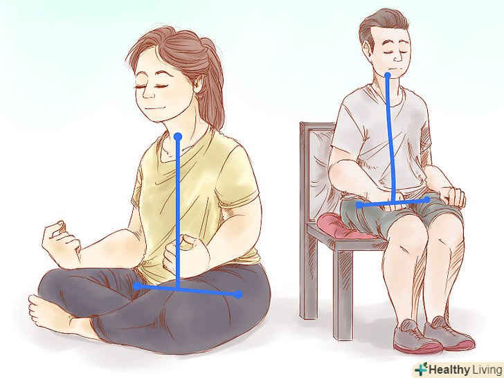 Сядьте в зручну позу. дуже важливо відчувати себе комфортно під час медитації, тому постарайтеся знайти максимально зручну позицію. [8] традиційно медитацію практикують, сидячи на підлозі на подушці в позі лотоса або напівлот, однак якщо ваші ноги, стегна і поперек недостатньо гнучкі, вам може бути незручно. Виберіть позу, в якій вам легко зберігати рівновагу і ви здатні сидіти рівно і прямо.- Можете просто сісти на подушку, стілець або лавку для медитації, схрестивши ноги або не схрещуючи їх.