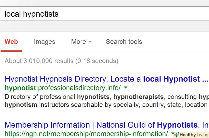 Якщо ви не можете знайти оголошення місцевих гіпнотерапевтів або клінік гіпнозу, запитайте знайомих вам людей (включаючи професіоналів) про тих, кого вони можуть вам порекомендувати. Подивіться на "жовтих сторінках". Пошукайте в Інтернеті, введіть в рядок пошуку запит" місцевий гіпнотерапевт " і назва міста, де живете. Ви отримаєте імена та номери телефонів.