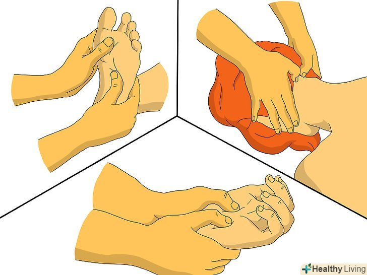 Прикладайте необхідну кількість сили. коли будете натискати на точки, натискайте сильно і впевнено. [11] сила натискання залежить від загального стану здоров'я. Натискання може викликати сплеск болю, але на ділі він повинен бути чимось середнім між болем і задоволенням.- Деякі точки будуть напружені; інші при натисканні можуть захворіти. Якщо відчуєте сильну різку або посилюється біль, поступово зменшуйте тиск, поки не відчуєте щось середнє між болем і задоволенням.
