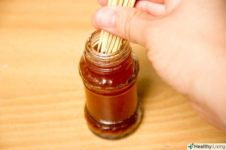 Залиште флакон на ніч.- Навіть якщо масло тільки на дні флакона, занурені зубочистки все одно будуть сильно пахнути. Поки зубочистки знаходяться у флаконі, їх дерев'яна основа повністю вбирає масло. Зубочистки стануть вологими, після того як вони простоять одну ніч в масляному розчині.