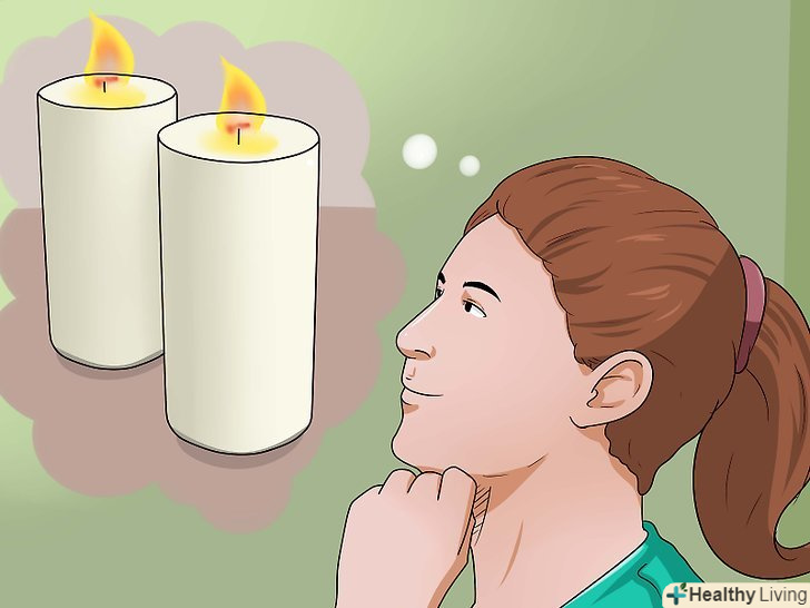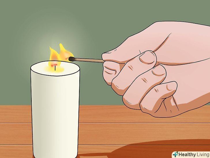 Запаліть свічку. концентрація уваги на полум'я свічки називається медитацією Тратака. [11] розташуйтеся досить далеко від свічки, щоб ви могли легко зосередити свій погляд на ній.- Переконайтеся, що свічка знаходиться в спокійному, вільному від протягів місці. Вогонь, який танцює на вітрі, буде викликати напругу і занепокоєння, що полум'я згасне.