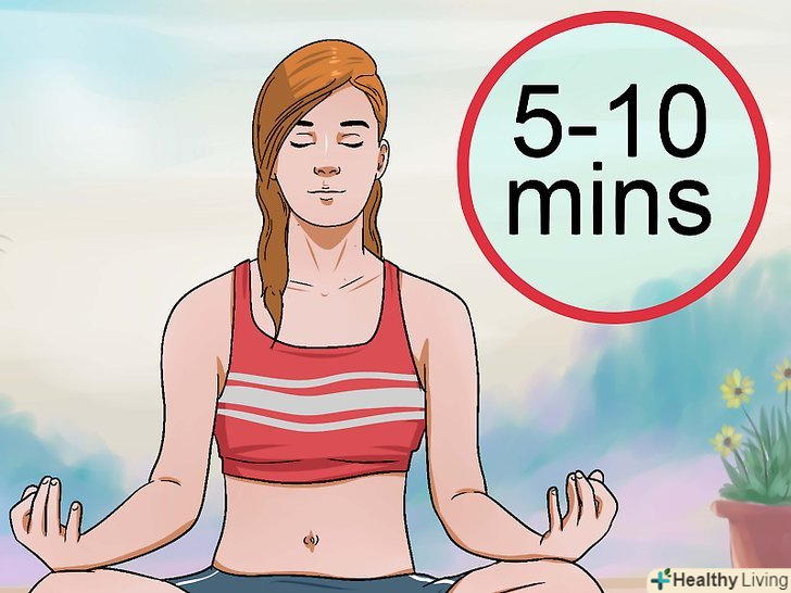 Встановіть таймер. Так як під час медитації потрібно тренувати і тіло, і розум, почніть з коротких сеансів тривалістю 5-10 хвилин. Повторюйте ці короткі сеанси протягом дня. [3]- Краще використовувати таймер, ніж годинник, тому що так ви не будете відволікатися, щоб перевірити, скільки часу залишилося. Крім того, якщо ви відчуваєте сонливість, таймер не дасть вам заснути на більш тривалий період, ніж ви виділили під медитацію.
