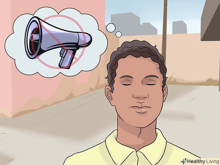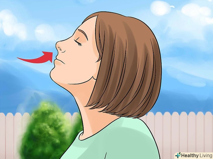 - Замість того щоб відключатися від більшої частини того, що оточує вас, включіть кожне з п'яти почуттів. Відкрийте очі і погляньте на обстановку навколо вас, звернувши увагу на будь-який рух, колір або об'єкти, які кидаються вам в очі. Зверніть увагу на запахи в повітрі, на будь-які звуки, можливо, гудіння електрики, звуки автомобілів за вікном або спів птахів. [12]