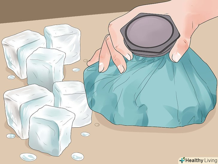 Прикладайте лід. [5] лід може допомогти зменшити набряк, але його не можна залишати надовго; прикладайте лід на 5-10 хвилин за один раз.