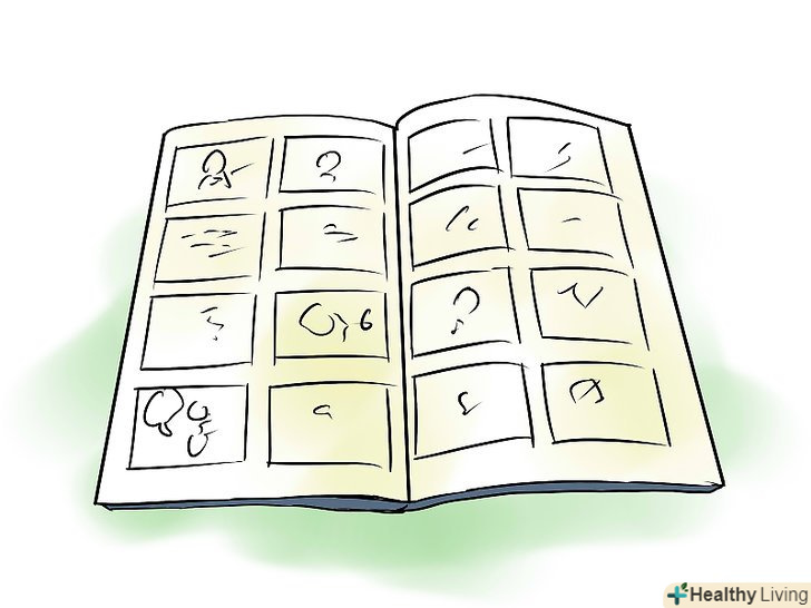 Зробіть розкадрування фільму.це виглядає приблизно також як розкадровка коміксів, тільки без діалогових "бульбашок". Це може бути зроблено у великих масштабах, прорисуйте тільки великі сцени або переходи, або ж, це можна це зробити на мікрорівні, промальувавши кожен кадр і кут нахилу камери.- Цей процес допоможе вам уникнути труднощів. Ви можете спробувати знімати без розкадровки, але вона не тільки допоможе вам візуалізувати свої ідеї, вона допоможе пояснити ваше бачення іншим членам команди.