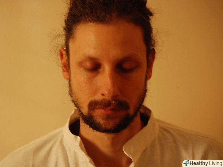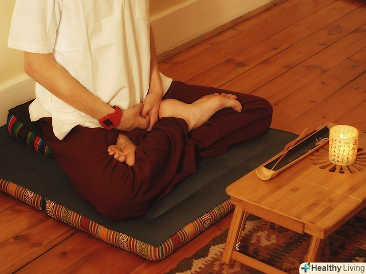 Сядьте на килимок або подушку. багатьом зручніше сидіти, схрестивши ноги (по-турецьки), але ви можете також сидіти на колінах, підібравши під себе ноги. Не варто турбуватися, якщо вам не вдається поза лотоса – вона вимагає тренування, а дискомфорт від незвичної пози може відвернути вас від медитації.