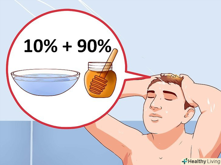 Позбавтеся від лупи. існують відомості, що мед також може позбавити від лупи і її хронічного аналога, себорейного дерматиту. [22] регулярно наносите мед на ділянки з лупою, щоб позбутися від неї і запобігти її повторній появі. [23]- Приготуйте суміш з 90% меду і 10% води і протягом двох-трьох хвилин втирайте його в ділянки з лупою. Залиште суміш на три години, після чого змийте її теплою водою. Повторюйте цей процес щодня протягом двох тижнів або до тих пір, поки не помітите результатів.
