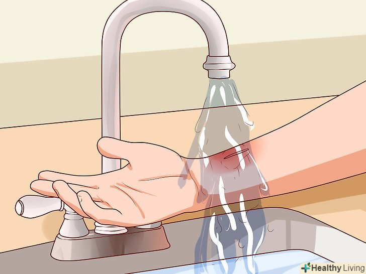 Промийте рану. перш ніж нанести мед, рану необхідно промити і видалити всі дрібні сторонні частинки. Це допоможе позбутися від бактерій і знизить ризик занесення інфекції. [6]- Обережно і ретельно промийте рану теплою водою з милом. Для промивання рани згодиться звичайне кухонне мило. Що стосується видалення бактерії, то всі види мила однаково ефективні. [7] промийте рану, поки не змиєте все мило і дрібні сторонні частинки. [8]