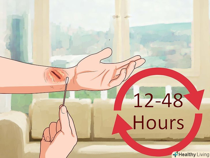 Повторіть процес. залежно від ступеня тяжкості рани і того, як швидко вона заживає, мед необхідно наносити кожні 12-48 годин. Промивайте рану і наносите мед так часто, як це необхідно, поки вона не заживе. Обов'язково зверніться до лікаря, якщо рана не заживає або у вас виникли ознаки інфекції. [16]- Оглядайте рану протягом не менше двох днів, щоб переконатися у відсутності інфекції. Дивіться, щоб ваші руки були чистими і при кожному огляді наносите нову чисту пов'язку.
