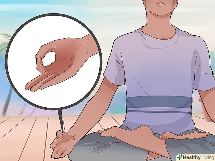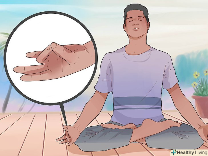 Торкніться великим пальцем правильної точки. це основа більшості мудрий. Розслабте руки і торкніться великим пальцем потрібної точки, трохи натискаючи на неї. Не потрібно тиснути сильно. Розслабте інші пальці. [4]
