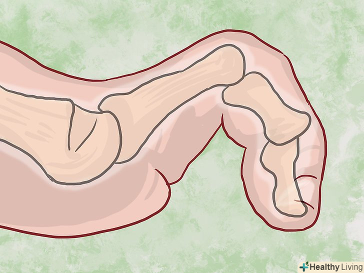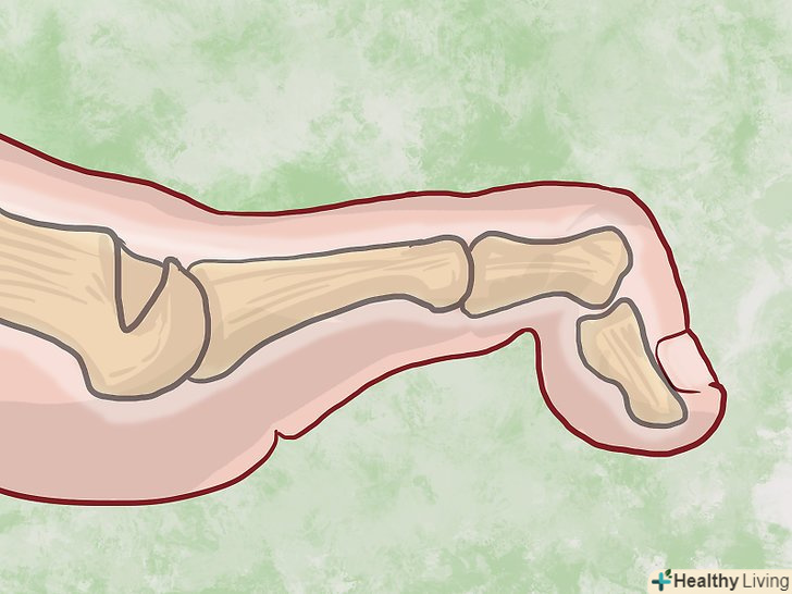 Виправте "клишоногий стопу". при такому пошкодженні ваш палець викривляється в напрямку підошви через стиснення і вигину як проксимального (внутрішнього), так і дистального (зовнішнього) суглоба. При цьому на кінці пальця розвиваються хворобливі кісткові мозолі і шкірні ущільнення. Це може бути викликано носінням занадто тісного взуття, травмами (наприклад, розтягуванням сухожиль) і деякими захворюваннями, такими як цукровий діабет.- Клишоногий стопу можна виправити також за допомогою хірургічних методів, використовуваних для лікування молоткообразного викривлення (розріз і розтягнення стиснутих сухожиль).