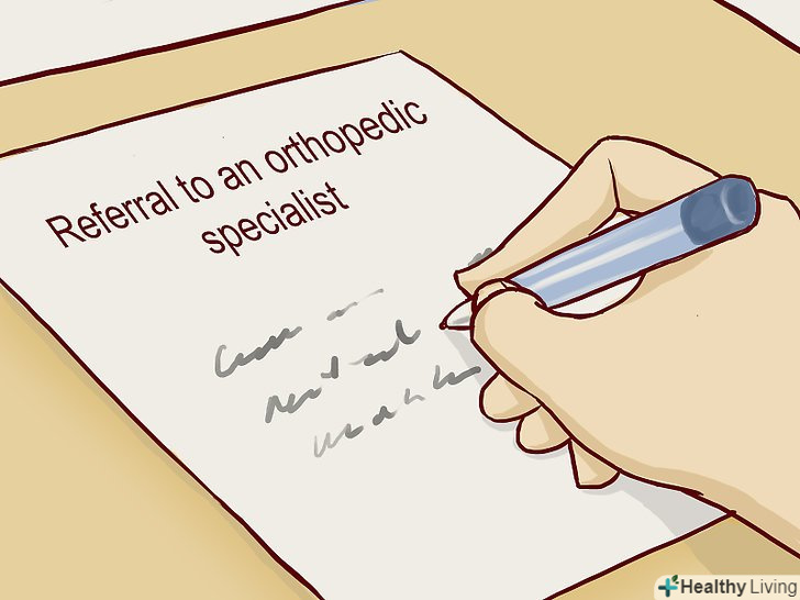 Запишіться на прийом до ортопеда. це фахівець, що займається суглобами і здатний виправляти проблеми з ними, накладаючи скоби, шини, здійснюючи хірургічні та інші інвазивні операції. Цілком ймовірно, що вам не буде потрібно хірургічне втручання, проте ортопед зможе вірно виявити можливі проблеми з суглобами, визначити, чи не викликані вони артритом, і в разі необхідності виписати протизапальні або знеболюючі препарати.- Ортопед також може направити вас на рентгенівське дослідження, ізотопне сканування кісток, МРТ (магнітно-резонансну томографію) або УЗД (ультразвукове дослідження), щоб отримати більше інформації, необхідної для постановки точного діагнозу.
