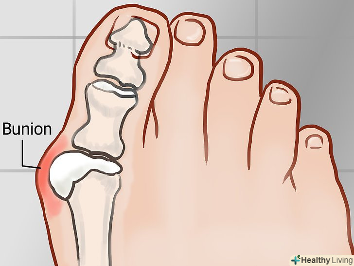 Подбайте про зниження болю. Бурсит являє собою хронічне розтягнення і запалення суглоба великого пальця ноги, викликане тим, що цей палець постійно притискається до решти через носіння незручною або занадто тісного взуття (наприклад, туфель на високих підборах з вузьким носком). [1] плоскостопість також є однією з причин бурситу, який часто, через супутніх запалення, почервоніння, опухлості і ниючий біль, нагадує ревматизм і остеоартрит. У міру розвитку захворювання великий палець все більше викривляється, болі посилюються, що в результаті може привести до кульгавості і інших проблем з суглобами в щиколотці і коліні.- Викликані бурситом опухлість і біль можна зняти за допомогою відпускаються без рецепта протизапальних (наприклад, Ібупрофен або напроксен) і болезаспокійливих (таких, як ацетамінофен) препаратів.