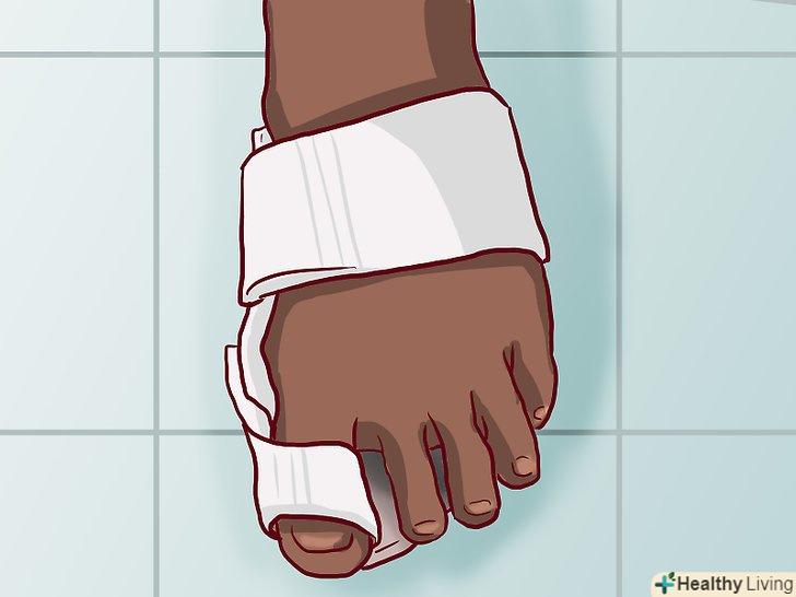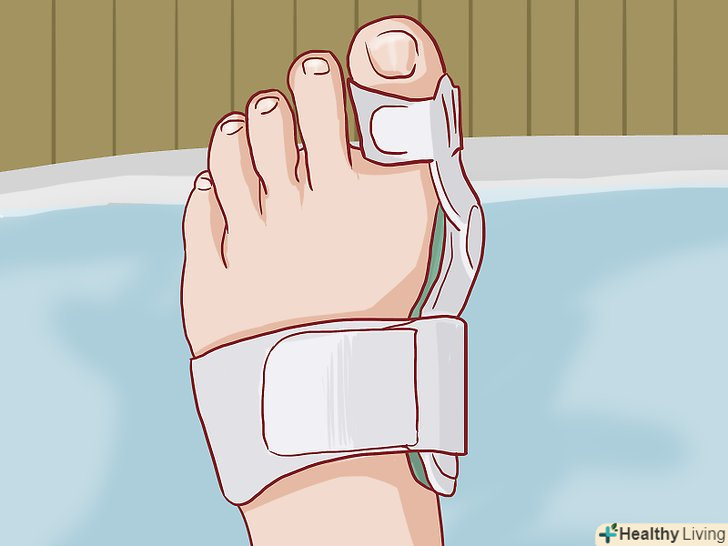 Накладіть шину. Прив'яжіть до викривленого пальця пластмасову, дерев'яну або металеву пластинку – це допоможе знизити біль і навіть випрямити суглоб, якщо бурсит не дуже давній. У ряді випадків полегшити біль в суглобі можна також за допомогою вставок з силіконових або повстяних подушечок. З вставками в взуття і накладенням шин вам допоможе ортопед, фізіотерапевт або хіропрактік.- Ортопедичні устілки (супінатори) і вставки допоможуть випрямити стопу, надати їй рівновагу і правильно розподілити навантаження на пальці і м'язи стопи.