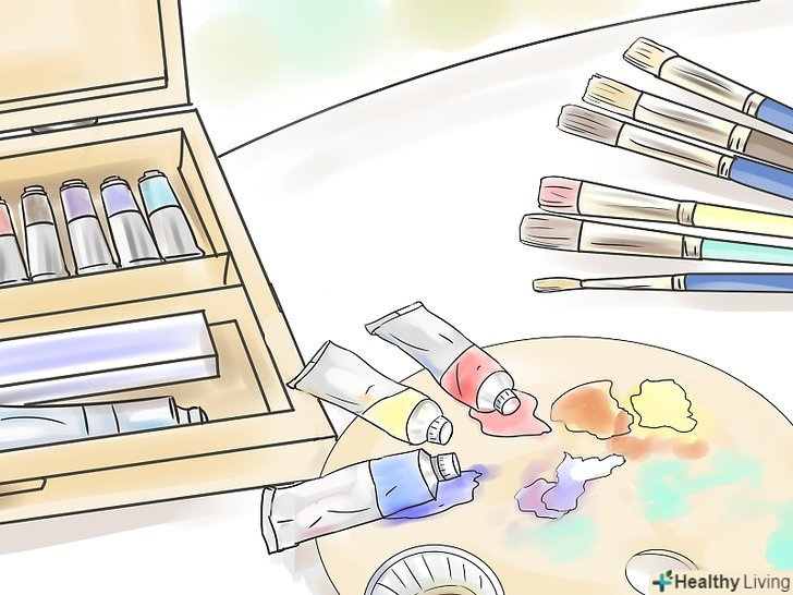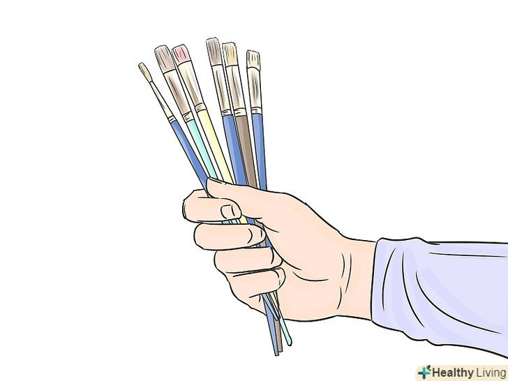 Виберіть кисті.якщо ви початківець художник, великої різниці між дешевими і дорогими кистями ви не помітите, тому купуйте прості кисті середнього цінового діапазону. Не варто купувати багато пензликів. Для роботи над однією картиною вистачить шести кистей, одна з яких обов'язково повинна бути дуже широкою, оскільки їй ви будете згладжувати краю.