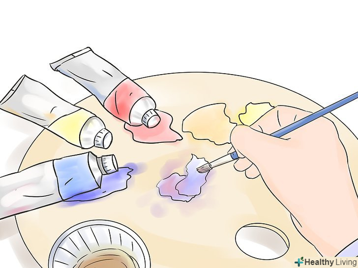 Підберіть палітру, з якої вам буде зручно. палітри бувають різних розмірів і форм: довгасті, круглі, у формі квасолини, і вони можуть бути виконані з різних матеріалів: пластик, дерево і так далі. Палітри у формі квасолі виглядають дуже красиво, однак вони занадто громіздкі і важкі і не підходять для постійного використання.- Очищення палітр зазвичай займає багато часу, тому якщо вам більше подобається витрачати свій час на живопис, а не прибирання, чому б вам не купити звичайні одноразові пластикові або паперові тарілки? Білий фон дозволить вам чітко бачити отриманий в результаті змішування фарб колір, і все буде чисто і акуратно. Викидайте тарілки після того, як закінчите писати. Сірі тарілки навіть краще білих, оскільки на сірому виразніше видно відтінки.